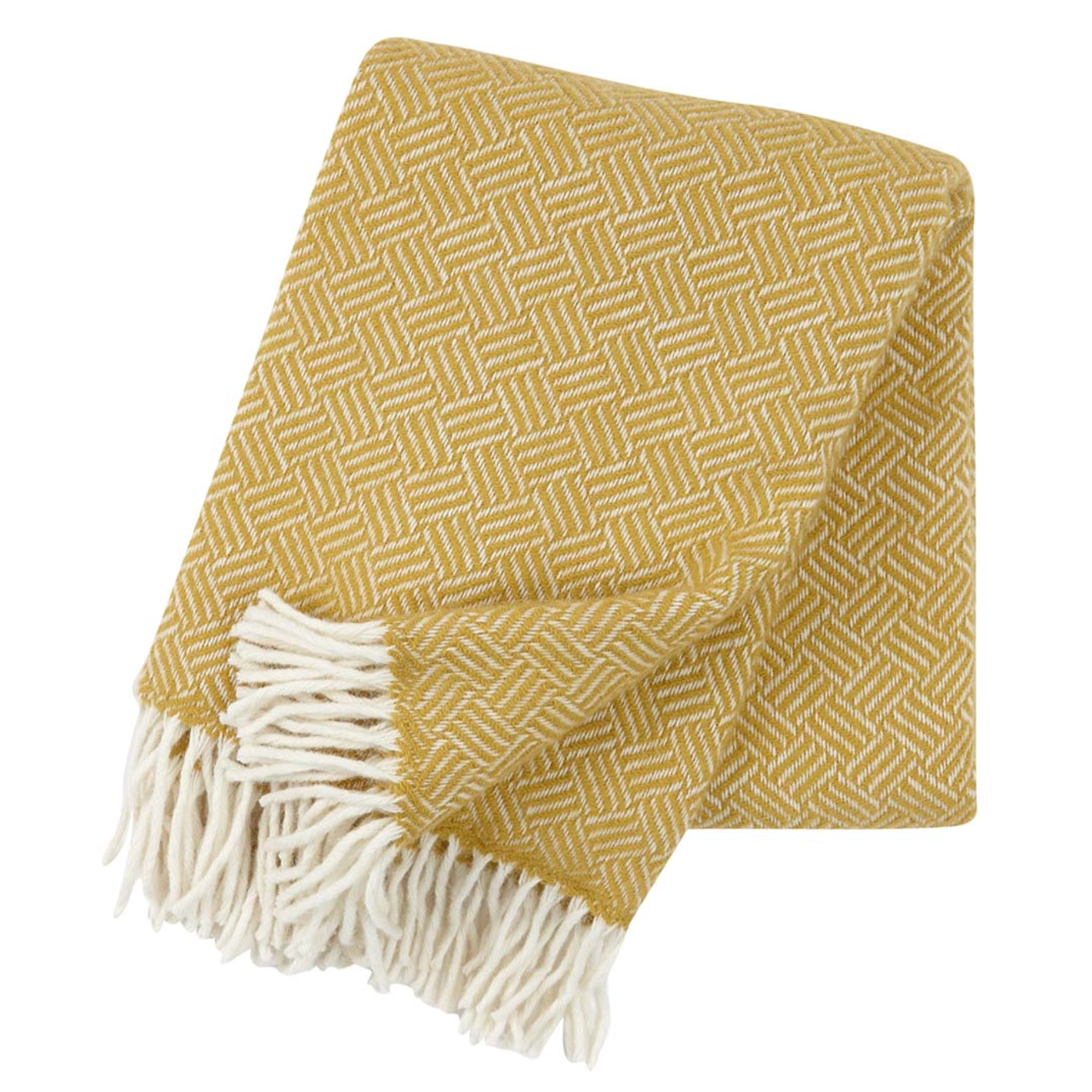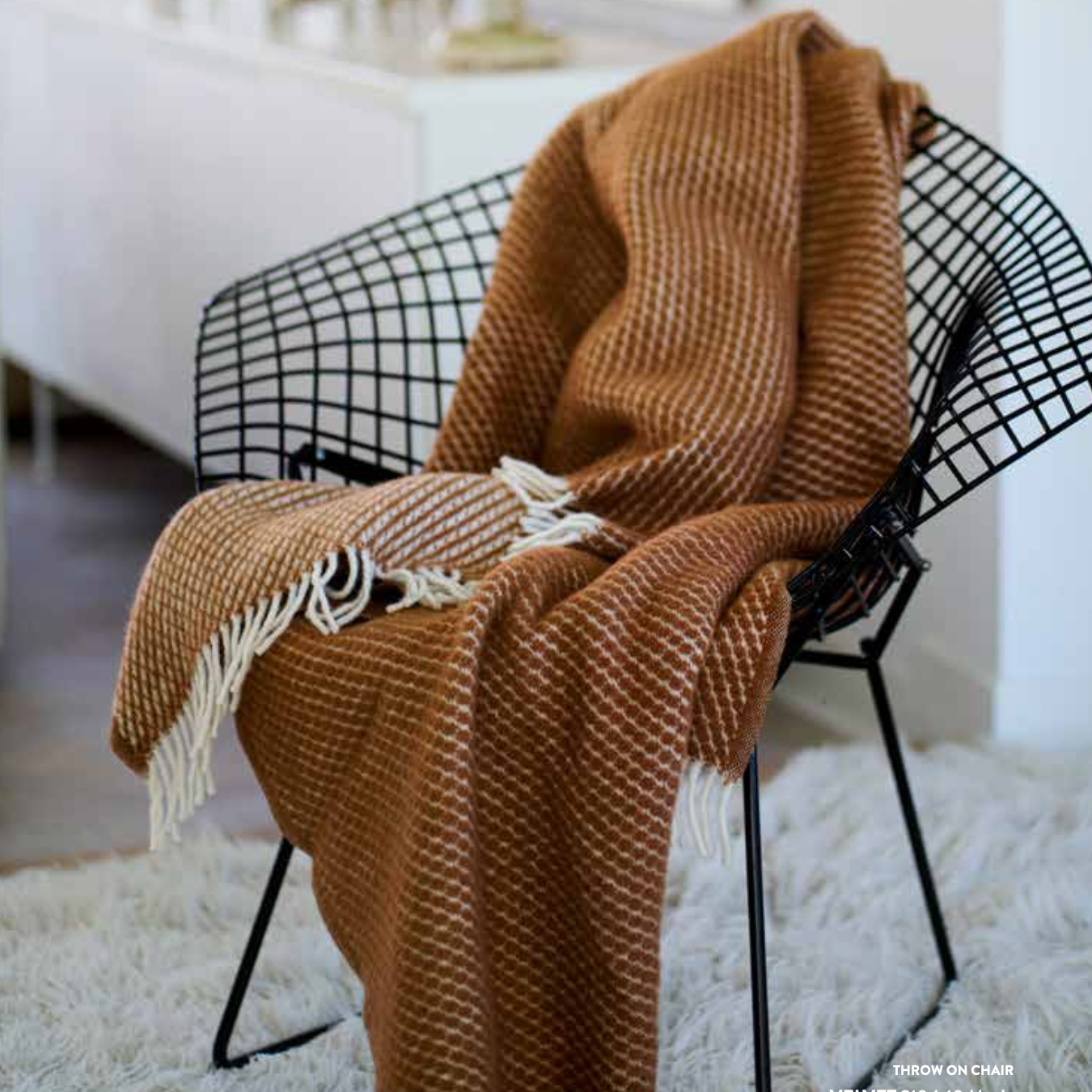 Awool throw is airier and not as tightly woven as a blanket. A throw has a visible warp and often fringes.