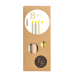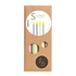 Minimalist and brilliantly coloured, these candles feature colour codes that relate to different aspects of life. Each candle is filled with good wishes and greetings. The candles are handcrafted from dyed, plant-based wax. The packaging, printed and finished in Hamburg on FSC-certified design paper using climate-neutral processes, is bilingual: one side in German, the other in English.