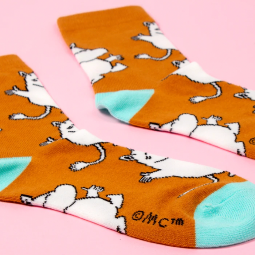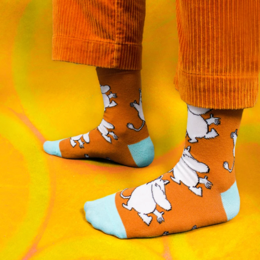 Is there a better feeling than putting on new socks for the first time? One thing's for sure - dressing up is guaranteed to be more fun and colourful with these fun Moomin socks from Nordicbuddies! Happy Moomin in trendy toffee and sky blue socks.