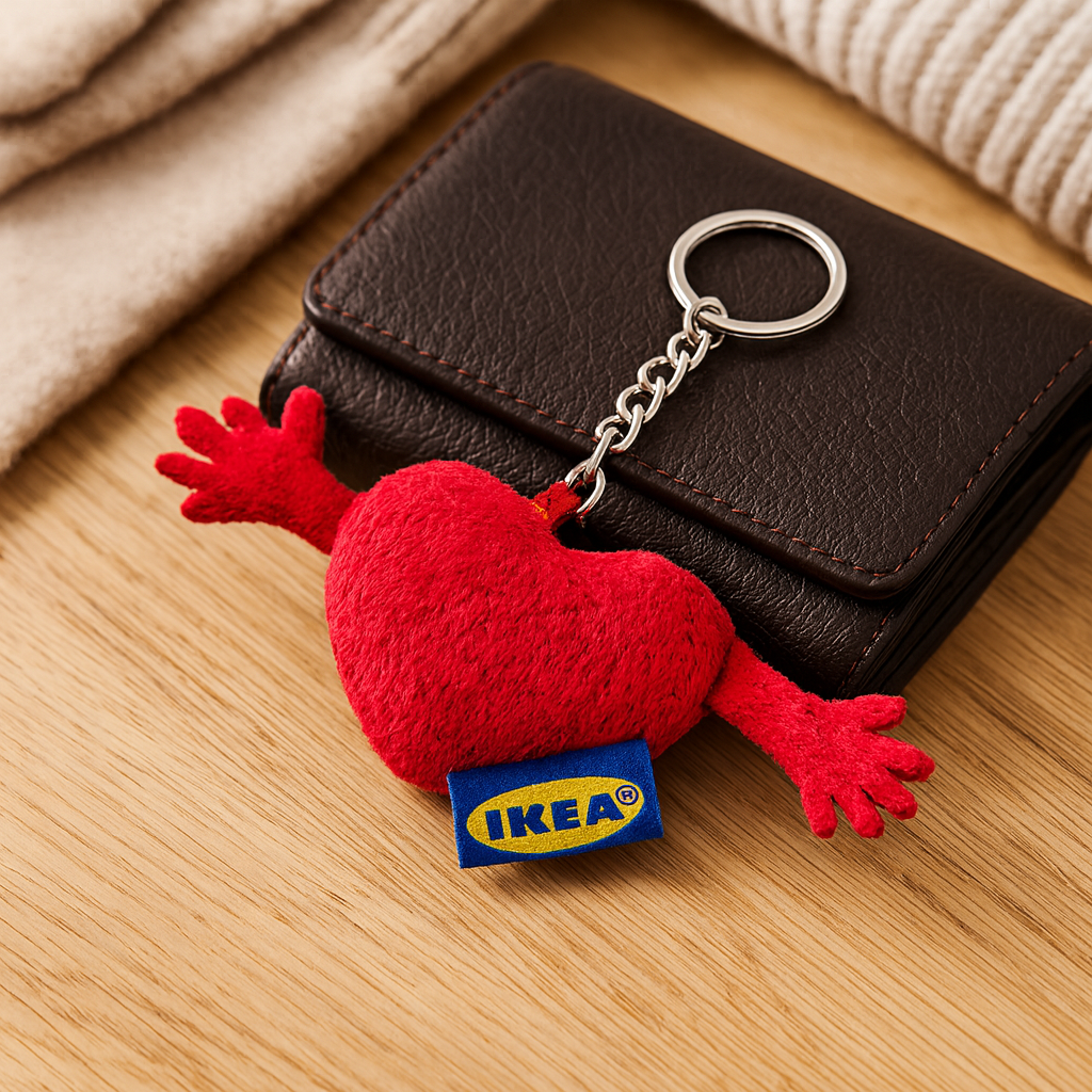 The red heart on this key ring is a miniature version of our beloved FAMNIG HJÄRTA cushion and is nice to hang as a decoration on your bag.