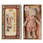 A classic Maileg item. This mouse is ready for hours of play and sleeps tight in the matchbox. Her clothes and the bed linen comes in unique prints and beautiful colours.