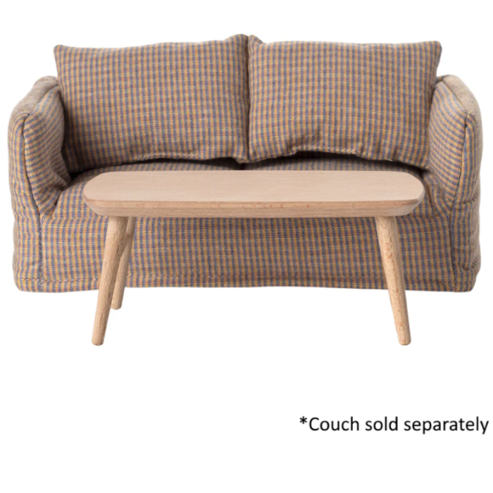 The Maileg Coffee Table Nature is a beautifully crafted wooden piece designed to complete any setting in the Maileg universe. With its soft natural finish and mid-century elegance, this table adds a touch of Scandinavian simplicity to a living room, for tea time, a mouse meeting or cosy chats.