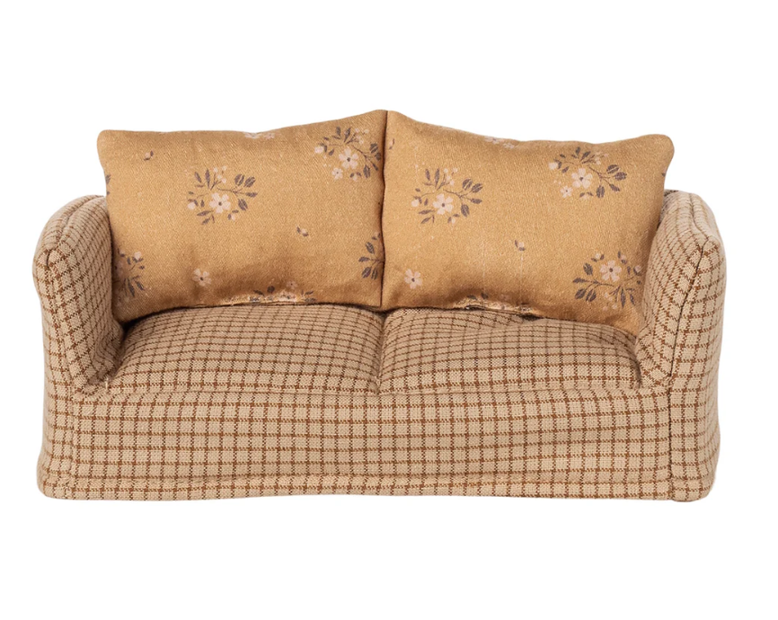 Give your Maileg mice a cosy place to relax with the beautifully crafted Couch Mouse Mable. Upholstered in vintage style checked fabric and complete with two floral cushions, this miniature sofa brings warmth, comfort and character to your Mouse Farmhouse living room. With its classic Scandinavian design and thoughtful details, it’s the perfect spot for mice families to gather and unwind in their tiny home.