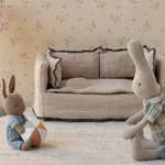 The Maileg Rabbit Set Micro in Brown Blue is a delightful addition to the Maileg family. This charming rabbit is dressed in a hand-knitted blue romper and comes with a beautifully crafted fabric ball, ready for endless playtime adventures. Made from soft linen and cotton, it embodies Maileg’s signature attention to quality and timeless design.