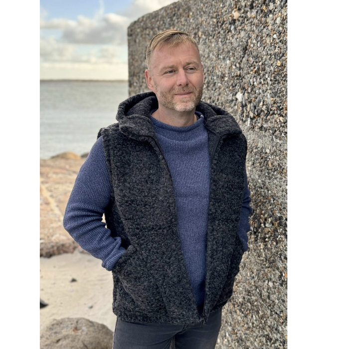 Original WOOLWEAR of Scandinavia® bodywarmer/vest with hood in casual version with through-zip (2-way zip). in charcoal grey mélange.