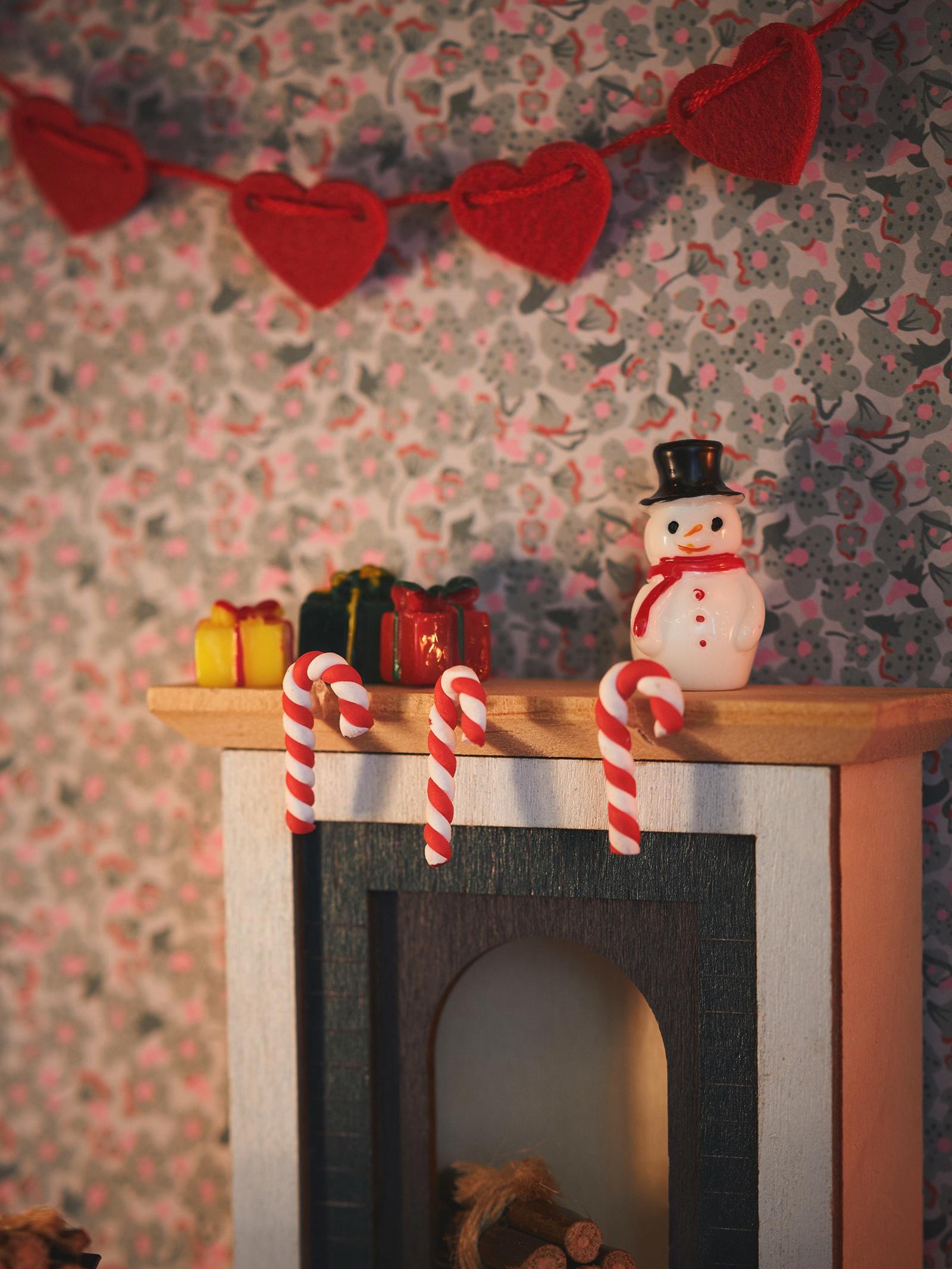 The miniature Christmas set is made of polyresin and polymer clay and consists of 6 pieces. Use the miniature items for your crafts, as doll house accessories, or as adorable additions to your Christmas elf or fairy door.