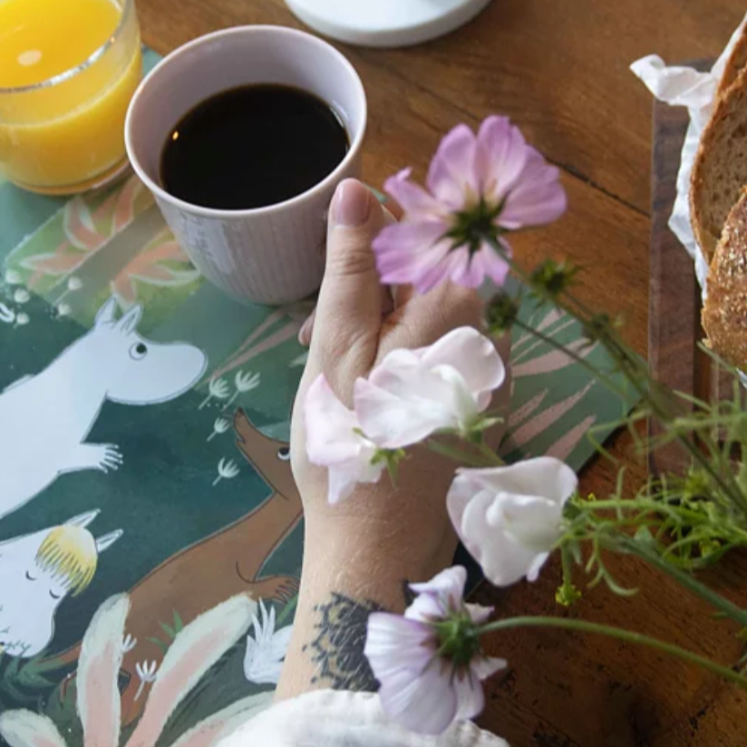 Two placemats with two different Moomin illustrations. Made from wood and cork. A perfect present for all Moomin lovers.