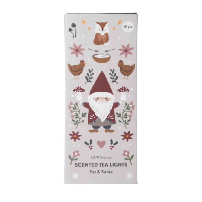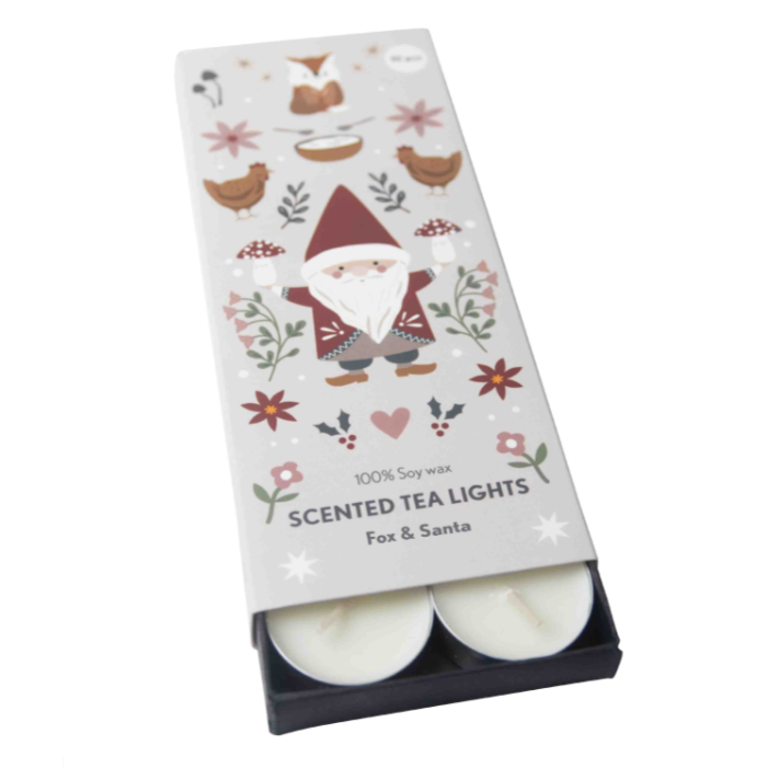 Scented Tea Light Candles 10-Pack, Fox and Santa