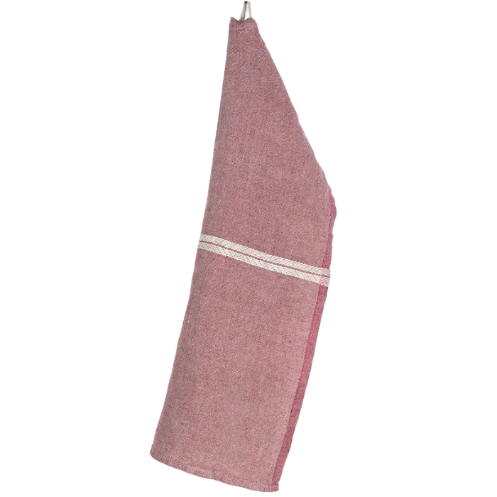 Venla Washed Linen Tea Towel, Melange Lingonberry-Linen